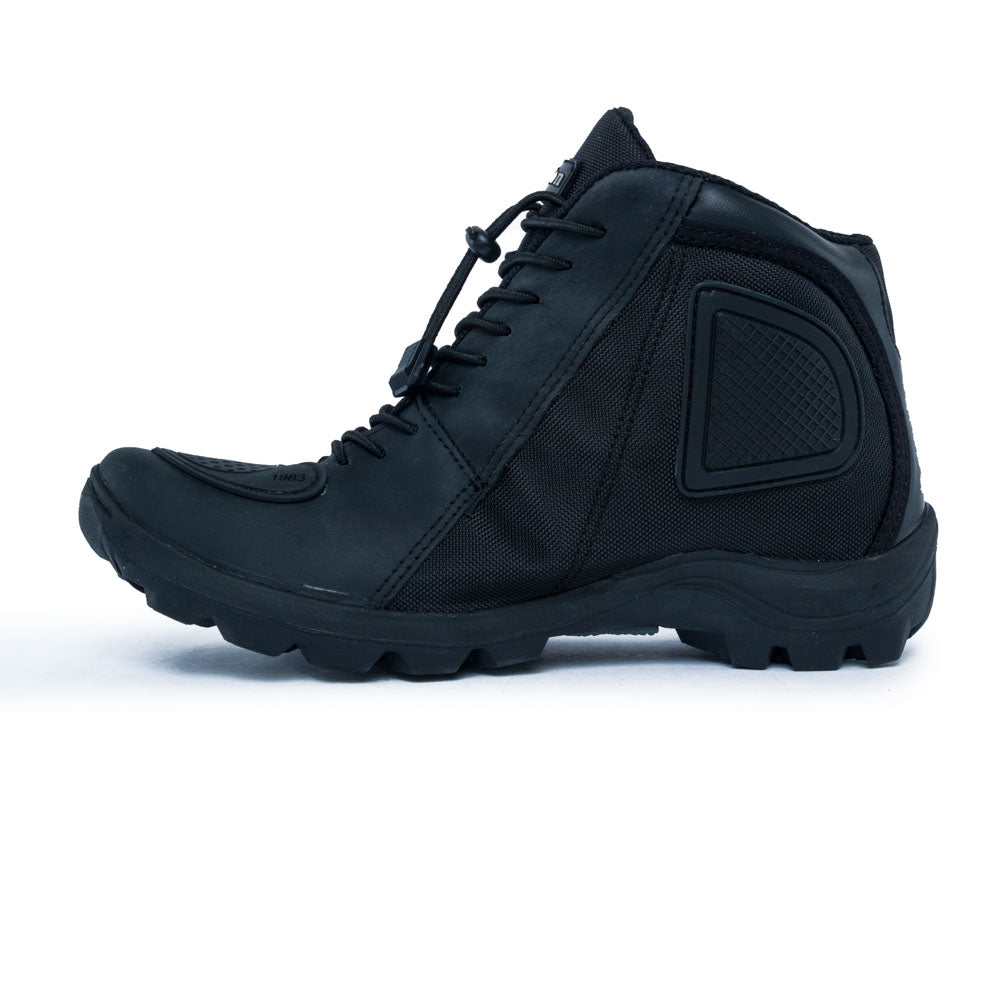 Calzado tipo bota ideales para realizar senderismo, motociclismo o escalada ¡LLeva tus aventuras a otro nivel! Elaborados en lona, cuero y PVC. Suela en caucho. Pieza en capellada elaborada en caucho. Cordón elástico ajustable Puede presentar variación de tono.