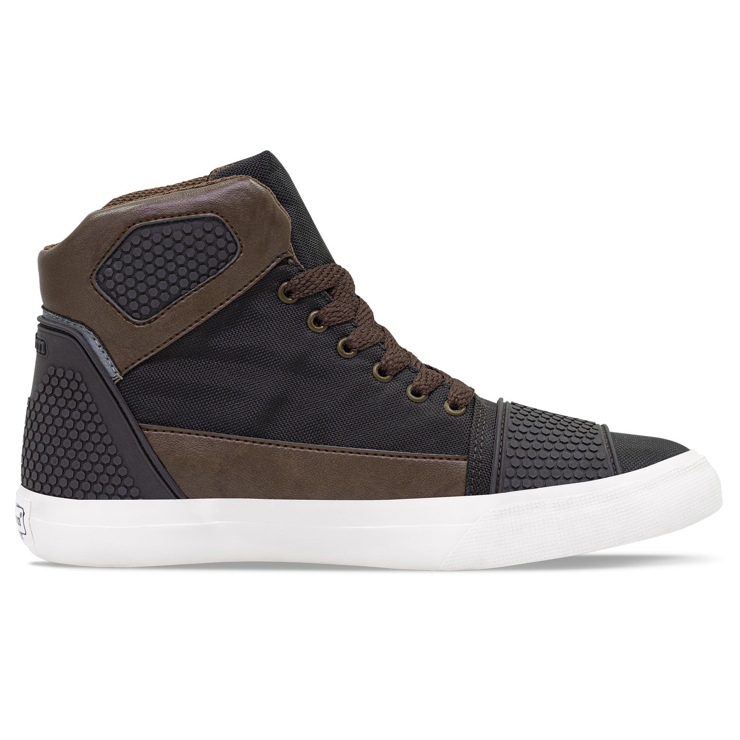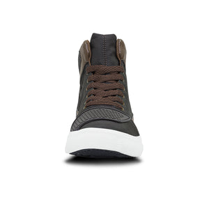 Zapatos casuales estilo botín que protegerán tus tobillos y los hará lucir muy estilizados. Ideales para tus actividades del día a día con un toque único. Tenis casual-deportivos con diseño tipo bota. Elaborados en sintético y lona, con piezas reflectivas y refuerzos en caucho, forro textil acolchado y suela en caucho vulcanizado recuperado (ecorubber).