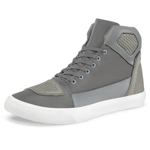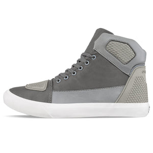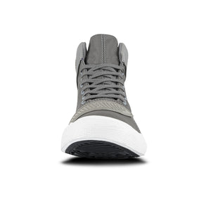 Zapatos casuales estilo botín que protegerán tus tobillos y los hará lucir muy estilizados. Ideales para tus actividades del día a día con un toque único. Tenis casual-deportivos con diseño tipo bota. Elaborados en sintético y lona, con piezas reflectivas y refuerzos en caucho, forro textil acolchado y suela en caucho vulcanizado recuperado (ecorubber).