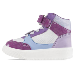 Zapatos ideales para niños que brindan comodidad superior y aseguran que tus pequeños estén listos para correr y saltar durante todo el día . Tenis casuales infantiles con diseño tipo botín y correas de velcro ajustables. Elaborados en sintético, con aplique removible en glitter, hilos metalizados en cordones, forro textil y suela en PVC.