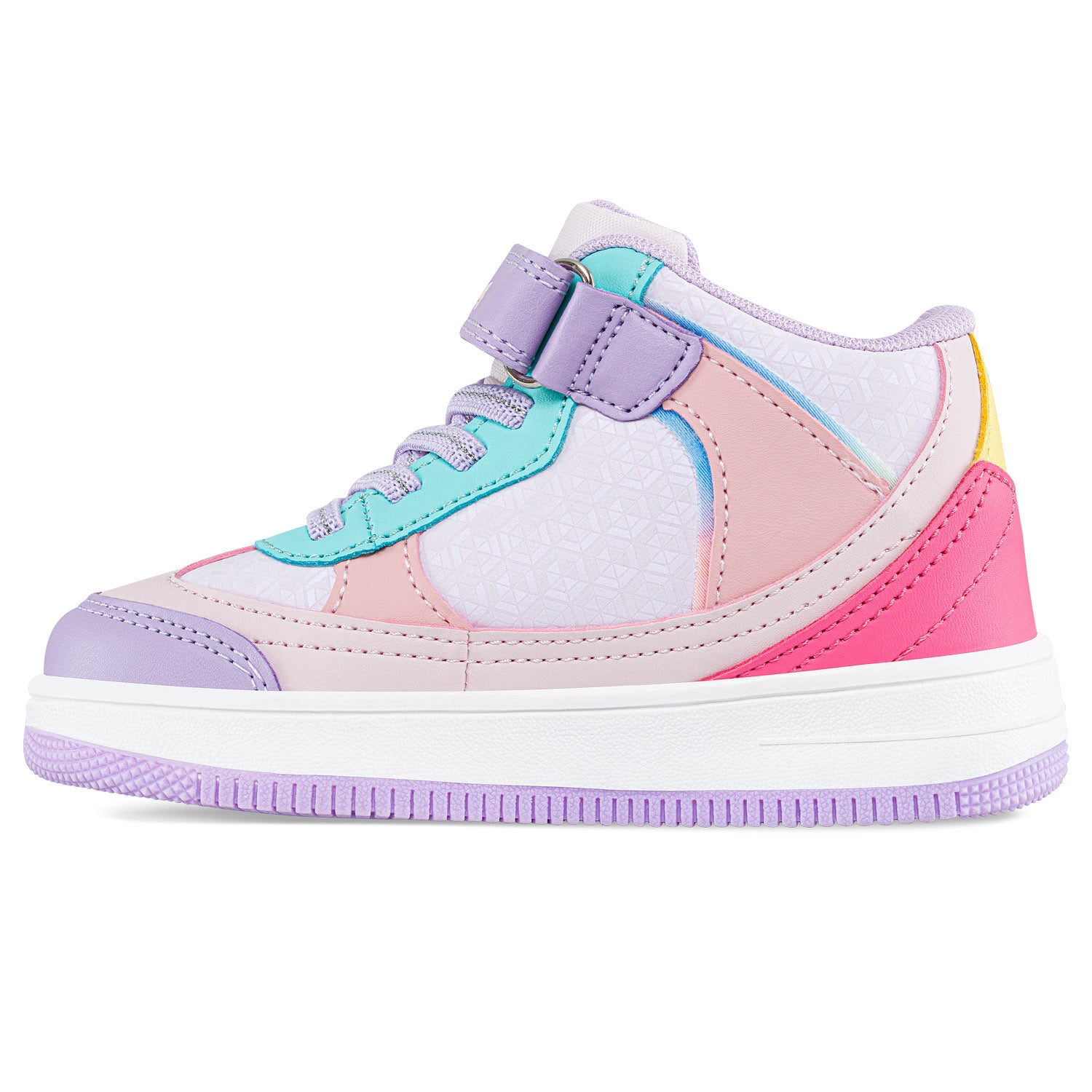 Zapatos ideales para niños que brindan comodidad superior y aseguran que tus pequeños estén listos para correr y saltar durante todo el día . Tenis casuales infantiles con diseño tipo botín, cordón elástico y correas de velcro ajustables. Elaborados en sintético y textil, con microperforaciones funcionales, aplique tipo capsula con movimiento, forro textil y suela bicolor en TPR.