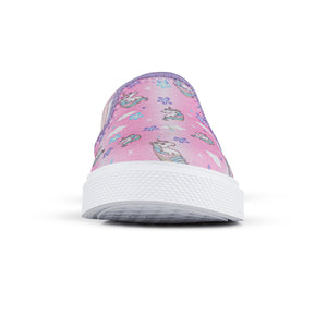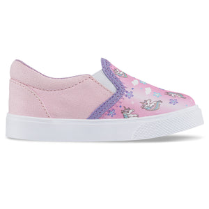Zapatos casuales para las niñas que quieren sentirse cómodas en un paseo por el parque, el centro comercial o en los días de juego ¡A ellas les van a encantar! Tenis casuales infantiles con diseño tipo slip-on y elásticos laterales para mayor ajuste. Elaborados en textil sublimado, plantilla en PU, forro textil y suela en PVC resistente al deslizamiento.