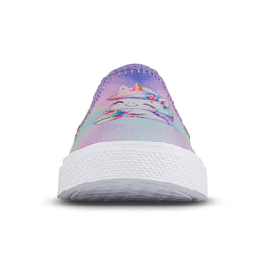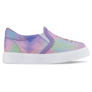 Zapatos casuales para las niñas que quieren sentirse cómodas en un paseo por el parque, el centro comercial o en los días de juego ¡A ellas les van a encantar! Tenis casuales infantiles con diseño tipo slipon y elástico lateral para mayor ajuste. Elaborados en lona sublimada, con hilos brillantes, forro textil y suela en PVC.