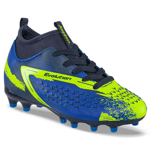 Ideales para los apasionados por el fútbol que desean ser los mejores en la cancha ¡Guayos con estilo que lucen increíbles! Guayos infantiles para cancha de grama con media elástica que se ajusta al pie. Elaborados en sintético y textil con diseño estampado, forro textil acolchado, plantilla ultraliviana de máximo confort y suela bicolor en TPU con taches de 1cm aprox.