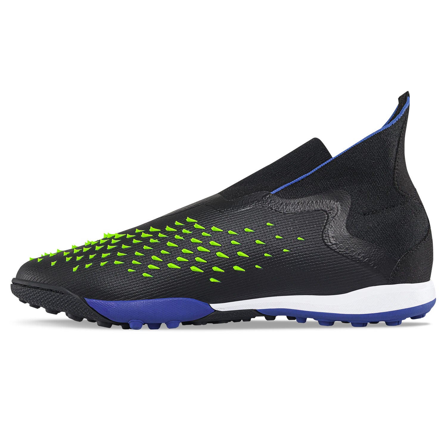 Zapatos para los amantes del fútbol ¡Pon a prueba su resistencia y juega tus mejores partidos con este calzado! Guayos para cancha sintética, elaborados en textil con recubrimiento en TPU, relieve y diseño en puntas multiples para mayor control, ajuste tipo media sin cordones, cuello elástico, forro textil acolchado, suela en caucho con taches tipo torretín.
