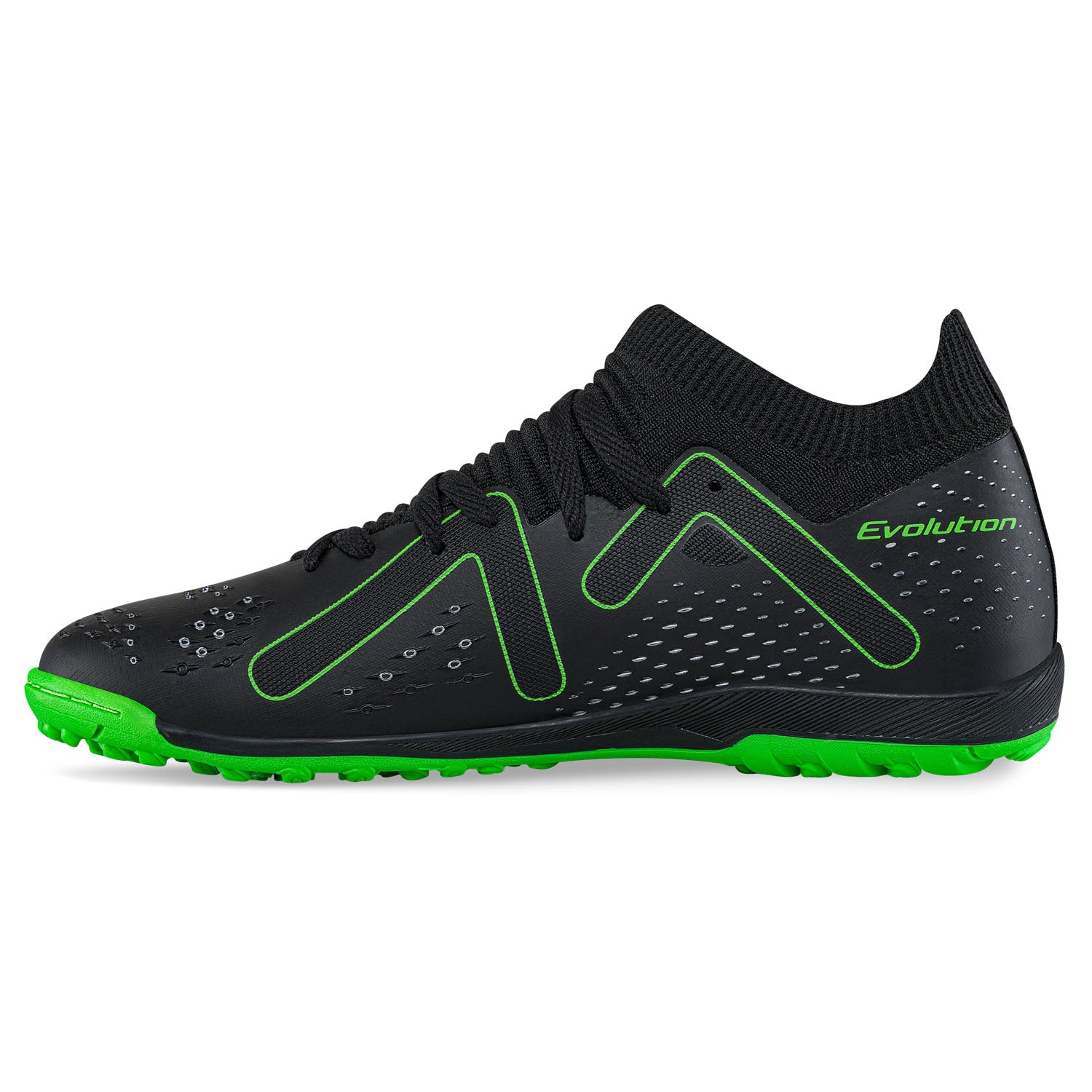 Zapatos para los amantes del fútbol ¡Pon a prueba su resistencia y juega tus mejores partidos con este calzado! Guayos para cancha sintética con cuello en neopreno que se ajusta al pie. Elaborados en TPU y textil, con diseño tipo media sin costuras, repujado decorativo, forro textil, plantilla ultraliviana y suela en caucho con taches tipo torretín.