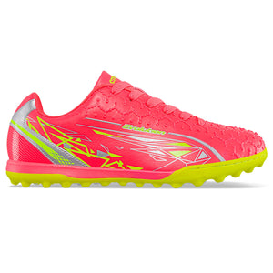 Zapatos para los amantes del fútbol ¡Pon a prueba su resistencia y juega tus mejores partidos con este calzado! Guayos para cancha sintética con estampado decorativo y repujados en capellada. Elaborados en sintético con textura al tacto, piezas brillantes, forro textil acolchado y suela en caucho bicolor con taches tipo torretín.