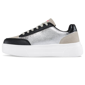Zapatos con estilo casual, ideales para las mujeres que aman verse siempre bien ¡Prueba su practicidad y comodidad! Tenis casuales con efectos metalizados y apliques decorativos en glitter. Elaborados en sintético, forro textil y suela con volumen en Phylon.