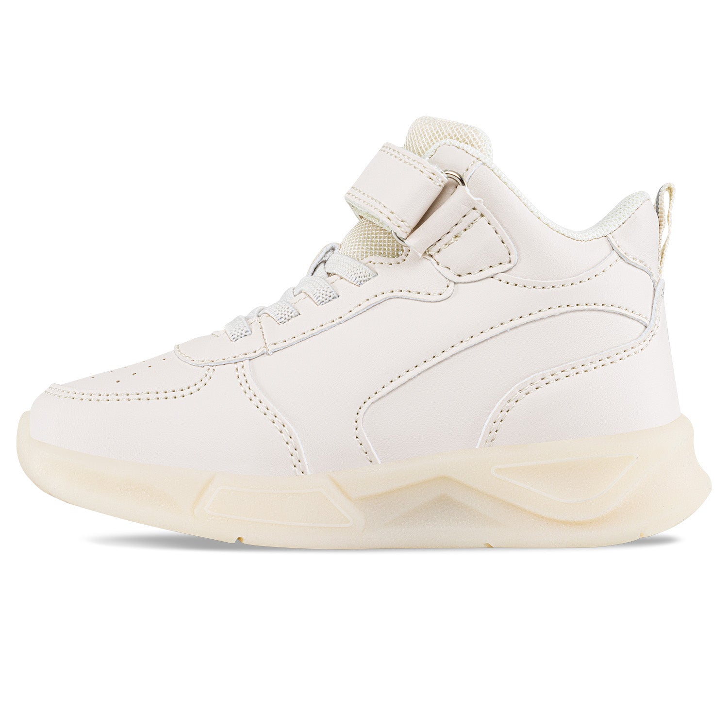Perfectos para los más juguetones de la casa ¡Llego la hora de divertirse! Tenis casual-deportivos infantiles con diseño tipo botín. Elaborados en sintético con cordón elástico y correas de velcro ajustables, microperforaciones decorativas, costuras decorativa, forro textil acolchado y suela en TPR con luces incorporadas.