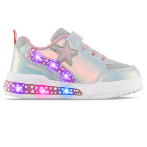 Perfectos para los más juguetones de la casa ¡Llego la hora de divertirse! Tenis casual deportivos infantiles con luces, correa ajustable de velcro y cordón elástico. Elaborados en sintético y textil con efecto tornasolado, plantilla en EVA y textil, forro textil y suela en EVA ultraliviana con PVC y luces.