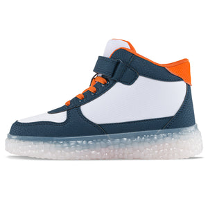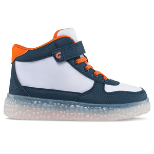 Perfectos para los más juguetones de la casa ¡Llego la hora de divertirse! Tenis casual-deportivos infantiles con luces, diseño tipo botín, correa de velcro para mayor ajuste y cordones elásticos. Elaborados en sintético con costuras y apliques decorativos removibles, forro textil acolchado y suela en TPR traslúcido.