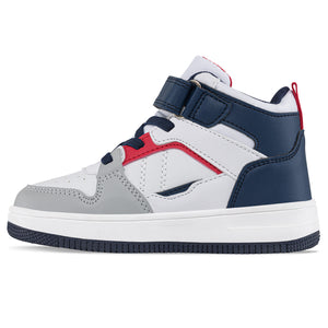 SKU: DN290J3. Zapatos casuales estilo botín ideales para niños y adolescentes que protegerán sus tobillos. Perfectos para actividades cotidianas. Tenis casual deportivos infantiles con diseño tipo botín con cordón elástico y correas de velcro ajustables. Elaborados en sintético, con microperforaciones decorativas, forro textil y suela bicolor en Phylon.