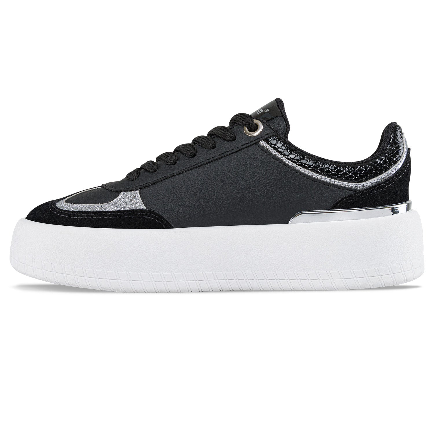 SKU: DU98090. Zapatos con estilo casual, ideales para las mujeres que aman verse siempre bien ¡Prueba su practicidad y comodidad! Tenis casual-deportivos con puntera metalizada en cordón. Elaborados en sintético con detalle posterior decorativo, plantilla textil, forro textil y suela con extra volumen en PVC.