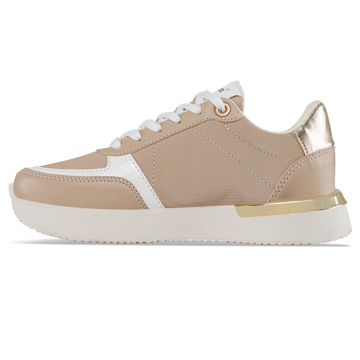 Zapatos con estilo casual, ideales para las mujeres que aman verse siempre bien ¡Prueba su practicidad y comodidad! Tenis casual deportivos con detalle posterior y puntera metalizada en cordones. Elaborados en sintético, forro textil y suela PVC con aplique decorativo.