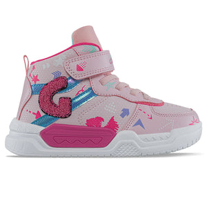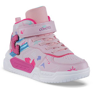 SKU: A03859E. Zapatos casuales estilo botín ideales para niñas y adolescentes que protegerán los tobillos. Perfectos para actividades cotidianas. Tenis casual deportivos infantiles con diseño tipo bota, correa de velcro ajustable y cordón elástico. Elaborados en sintético con aplique lateral en relieve, microperforaciones decorativas, plantilla en EVA y textil, forro textil y suela en Phylon con caucho resistente al deslizamiento.